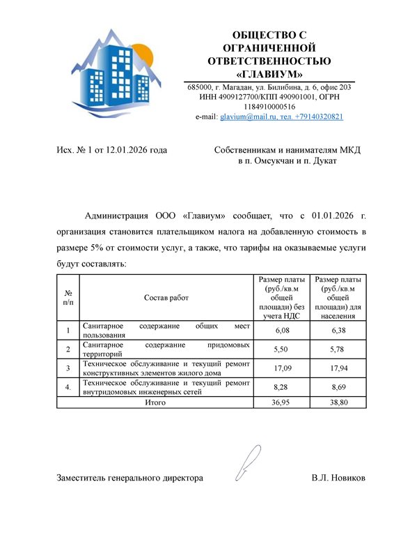 Администрация ООО «Главиум» сообщает, что с 01.01.2026 г. организация становится плательщиком налога на добавленную стоимость в размере 5%